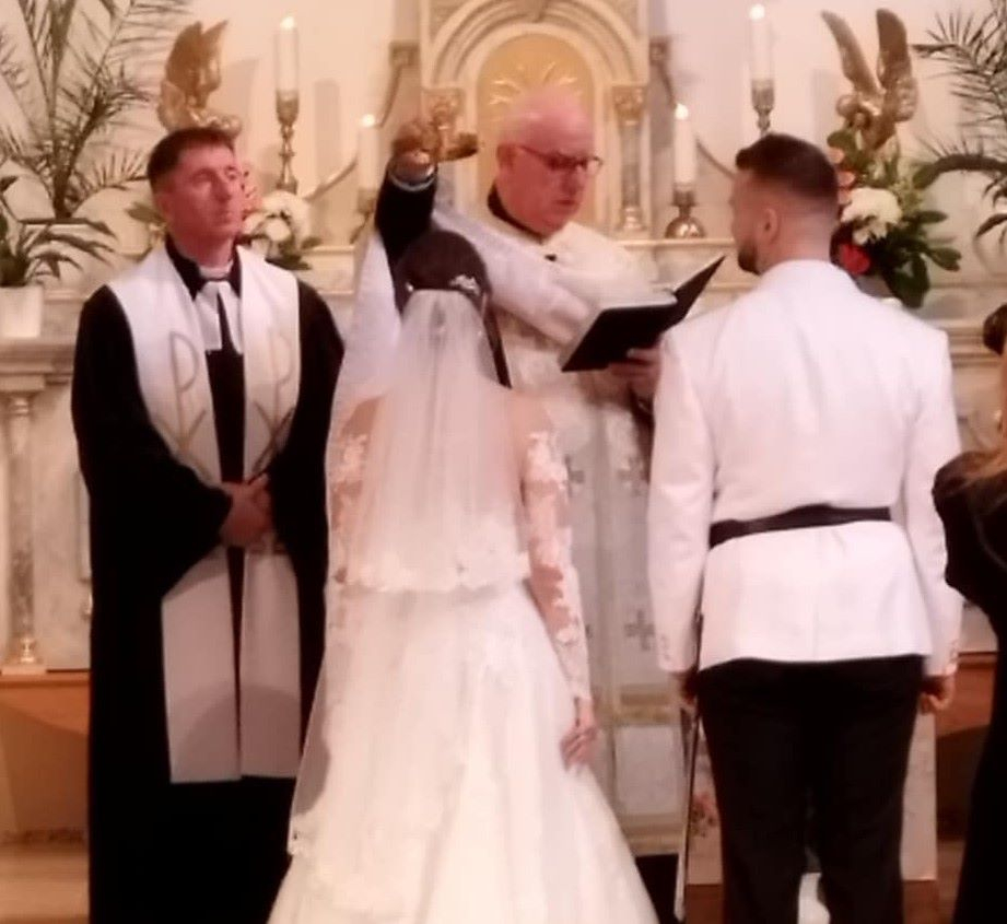 Szabó Ferenc alezredes igehirdetésében Pál apostolnak a Kolosséi gyülekezethez írott levele alapján arról beszélt, hogy „Öltsétek fel a szeretetet, mert az tökéletesen összefog mindent” (Kol 3,14). Az esketési szertartás végén az ifjú pár a velük együtt ünneplő katonabajtársak által kivont kardok alatt vonult ki a templomból, szimbolizálva, hogy akár fegyverrel is készek megvédeni az ifjú pár házasságát.