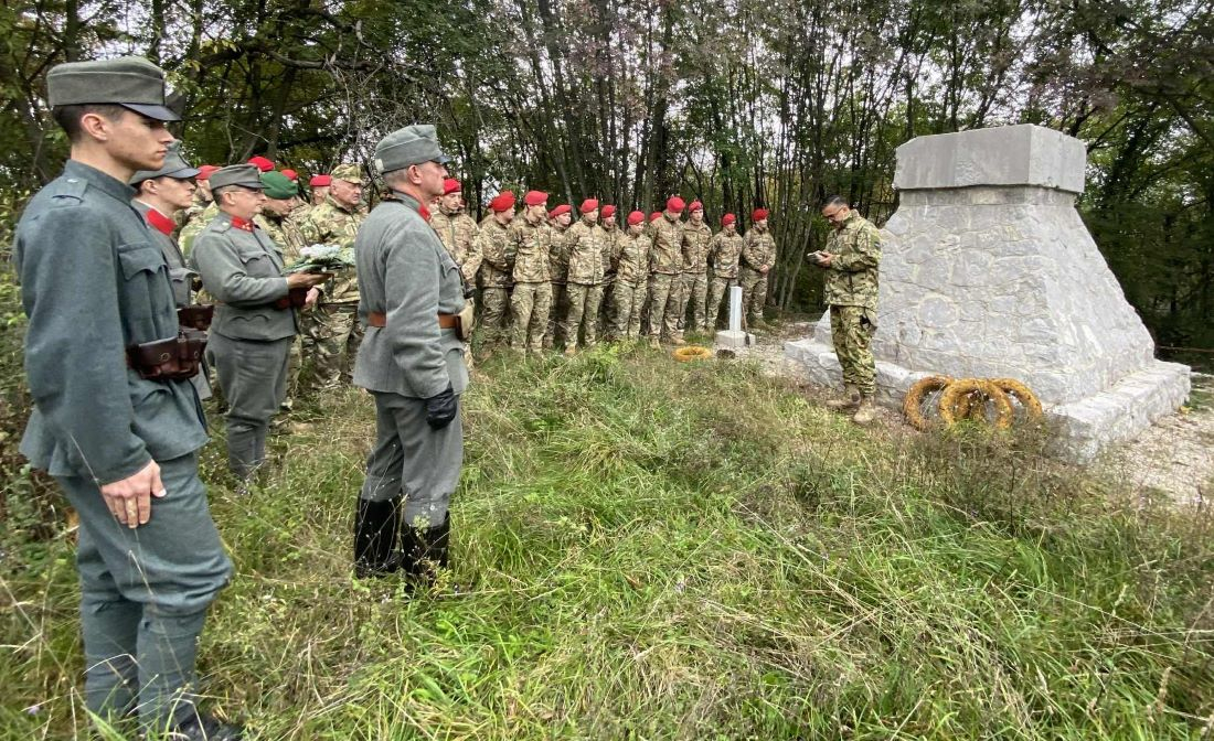 Maga Kratochvil Károly írja a Magyar gyalogság c. kötetében: „Vándor! Ha egyszer végigjárod azokat a véráztatta nekünk oly szent helyeket, akkor a Monte San Gabriele déli lejtőjén, a Monte San Michele északi lejtőjén, a 124 mp-on, San Martino del Carson és Nova Vasnál egyszerű cementtel összeragasztott, karsztkövekből épített két és félméteres gúlákat találsz, mindegyiken e felírással: A m. kir. nagyváradi 4. honvéd gyalogezred hősi halottainak és dicsőséges harcainak emlékére. Állj meg egy pillanatra, vedd le a kalapodat s mondj egy rövid imát azokért, akik mindhalálig harcoltak Istenért, Királyért, Hazáért!” E helyen – már este, sötétben – a koszorúzást s mécsesek elhelyezését követően a résztvevők közösen mondták el az Úr Jézus Krisztustól tanult imádságot, a Mi Atyánk-ot.