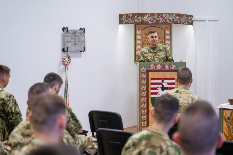 Itt a református tábori lelkész - szintén a hagyományokhoz ragaszkodva - a Himnusz eléneklését követően a 90. zsoltár szavaival imádkozott a felsorakozott 39-esek előtt: „Uram, te voltál hajlékunk nemzedékről nemzedékre”.