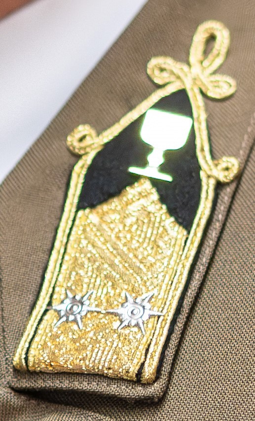 A sapkajelvény közös a HM Katolikus Tábori Püspökség lelkészeivel.