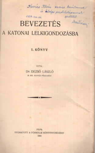 Dezső László: Bevezetés a katonai lelkigondozásba (I.), Főiskolai Nyomda, Pápa, 1941.