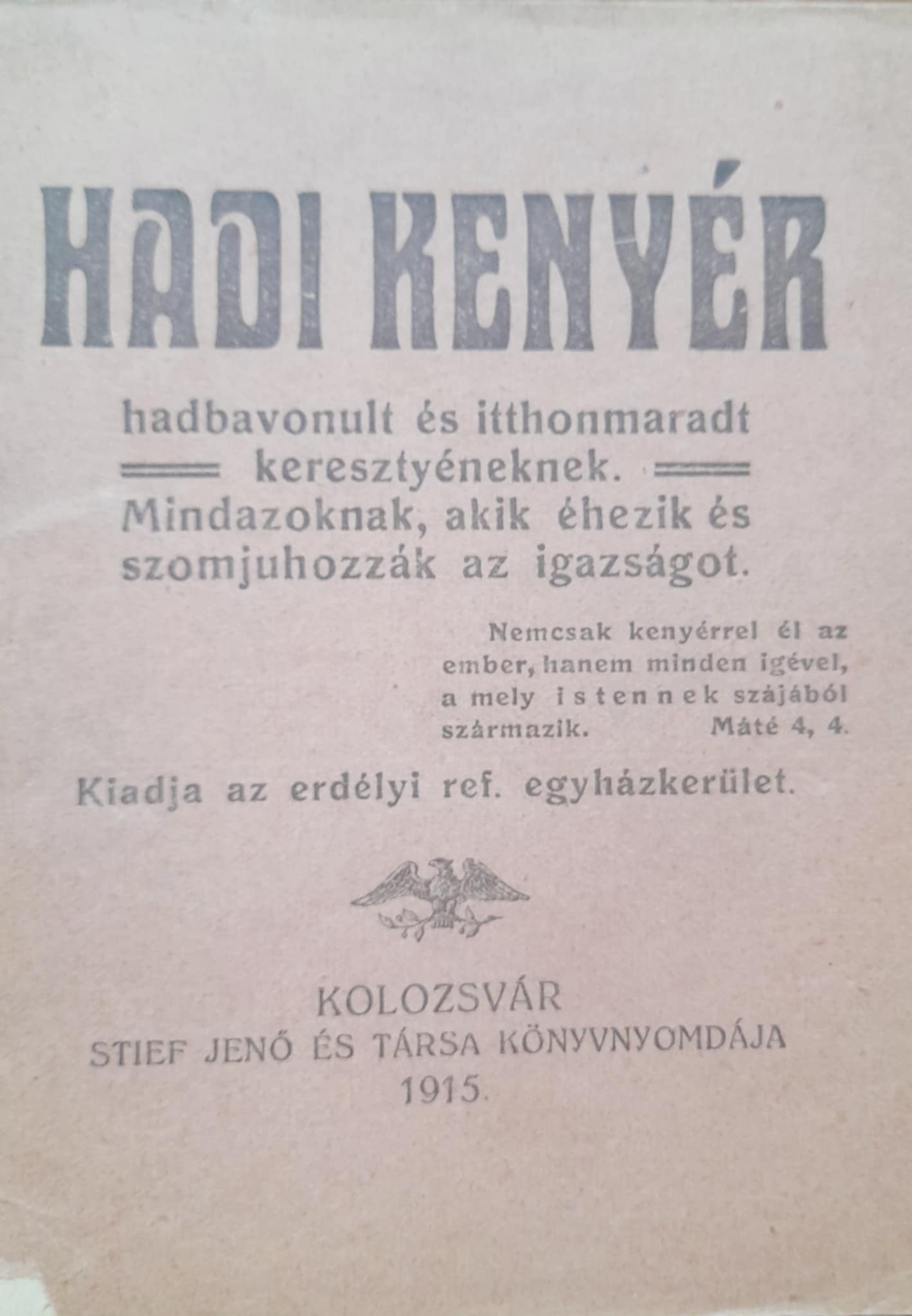 N.N.: Hadi kenyér hadbavonultak és itthonmaradott keresztyéneknek, Kolozsvár, Stief Jenő és Társa Könyvnyomdája, 1916.