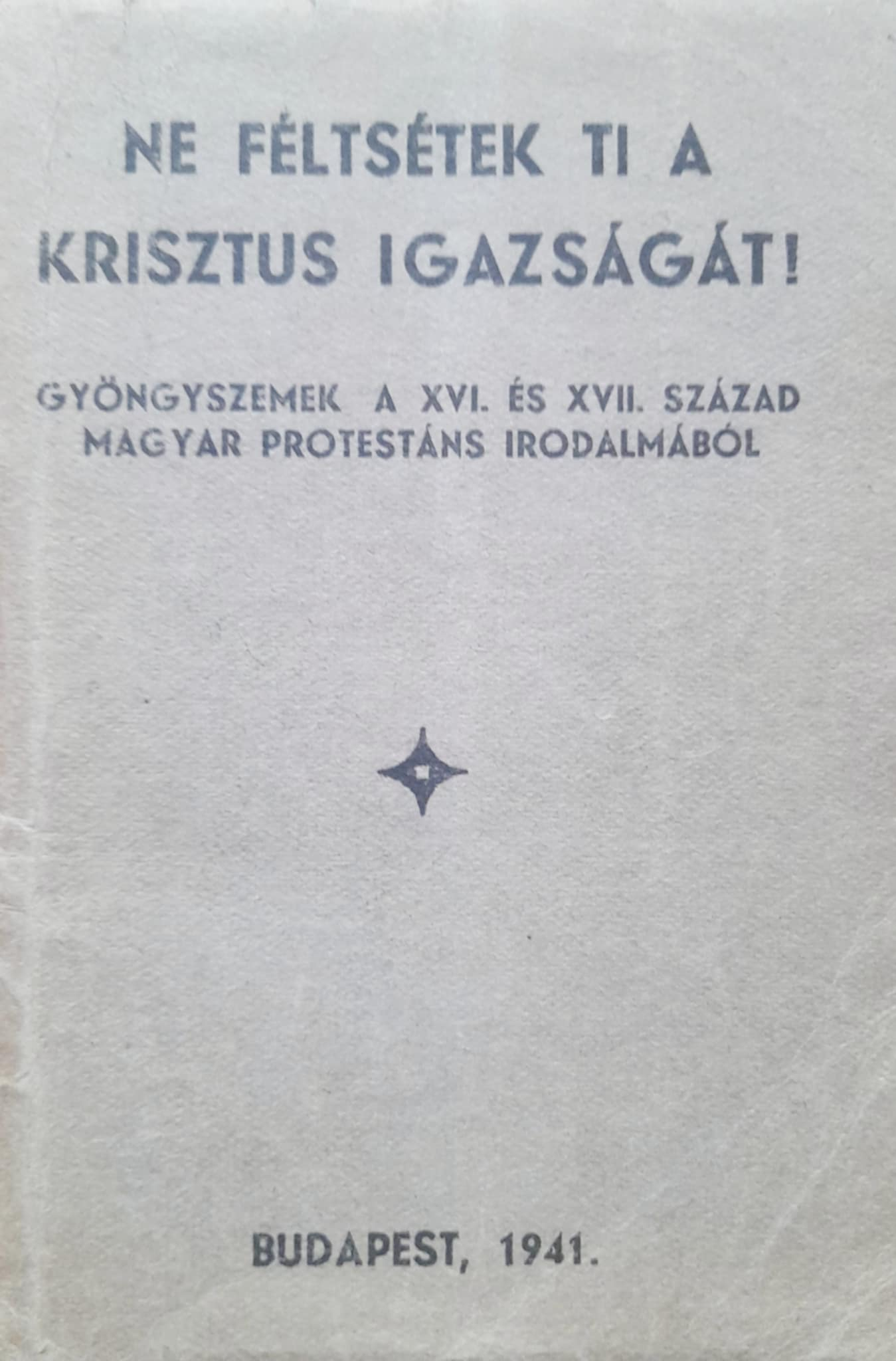N.N.: Ne féltsétek ti a Krisztus igazságát! Gyöngyszemek a XVI. és XVII. század magyar protestáns irodalmából, Budapest, 1941.