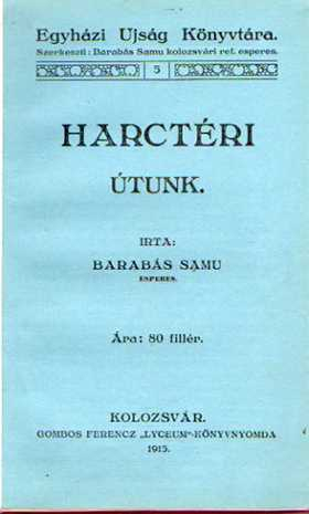 Barabás Samu: Harctéri utunk (Egyházi Újság Könyvtára 5.), Gombos Ferenc Lyceum Könyvnyomdája, Kolozsvár, 1915.