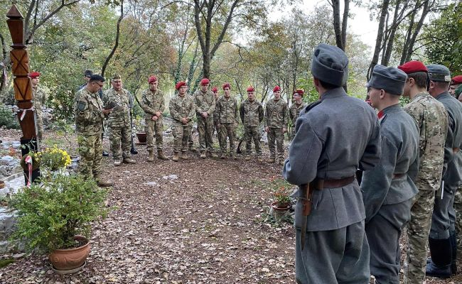 A San Michele legmagasabb pontján levő emlékműnél és keresztnél is megálltak, ahol emléktábla hirdeti: "Su queste cime italiani e ungheresi combattendo da prodi si affratellarono nella morte - ezeken a csúcsokon olaszok és magyarok bátran harcoltak, és a halálban testvérekké váltak." A tábori lelkész a 90. zsoltár szavaival emlékezett, „Uram, te voltál hajlékunk nemzedékről, nemzedékre.”