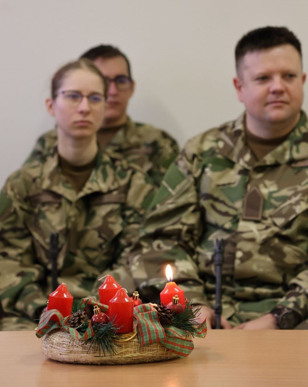 Az adventi koszorú gyertyáját a Területvédelmi Zászlóalj állományából Fodor József főtörzsőrmester gyújtotta meg.