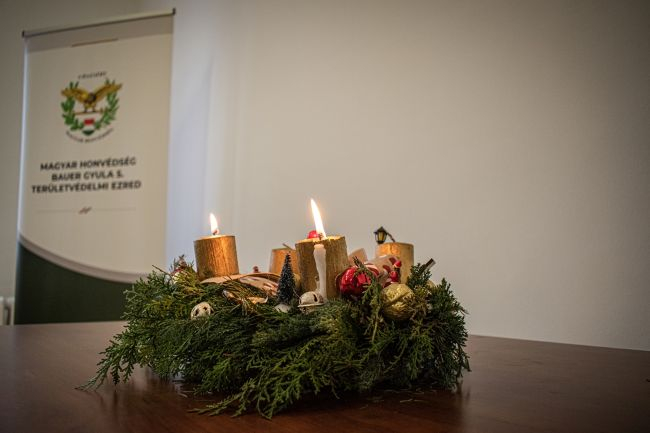 A MH. Bauer Gyula 5. Területvédelmi Ezrednél folytatódott az adventi gyertyagyújtás december 2-án Kaposváron. A szép számmal összegyűlt állományt Nagy Gábor alezredes, a MH. Bauer Gyula 5. Területvédelmi Ezred törzsfőnöke köszöntötte, majd Székely Attila őrnagy, kaposvári helyőrségi lelkész gyújtotta meg az adventi koszorú első és második gyertyáját.