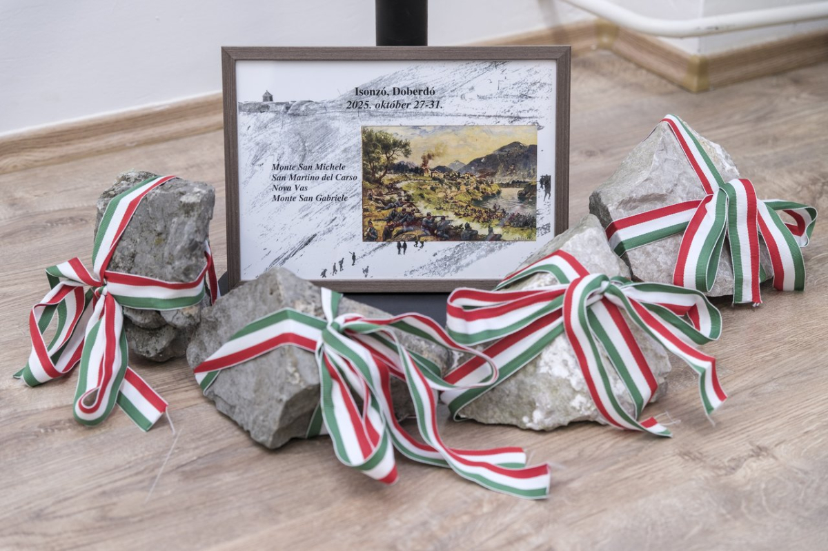 Az imateremben látható emlékek még tovább mélyítik a hely üzenetét. Itt kapott helyet a többi között U. Szabó Gyula tartalékos zászlós eredeti sírköve, amelyet a honvédtemető felújításakor sikerült megmenteni. A terem református részét Vass Antalról, a 39. gyalogezred legendás tábori lelkészéről nevezték el, akinek palástján átment egy golyó, amit aztán Baltazár Dezső egykori püspök a saját palástjával pótolt – meséli Sajtos Szilárd. A terem egyik sarkában pedig négy kő van elhelyezve a Doberdó fennsíkjáról, olyan helyekről, ahol magyar katonák ezrei vívták harcukat az első világháborúban.