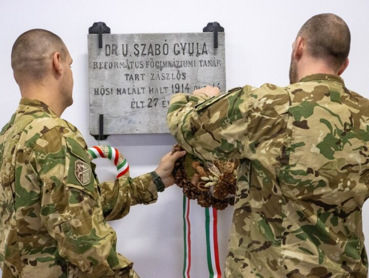 Ez követően – hagyományteremtő szándékkal - Hetényi Botond alezredes, zászlóaljparancsnok és Tóth István törzszászlós, a gránátosok vezénylőzászlósa megkoszorúzta Dr. U. Szabó Gyula református főgimnáziumi tanár, egykori 39-es zászlós eredeti sírkövét, mely az imateremben lett elhelyezve.![]()